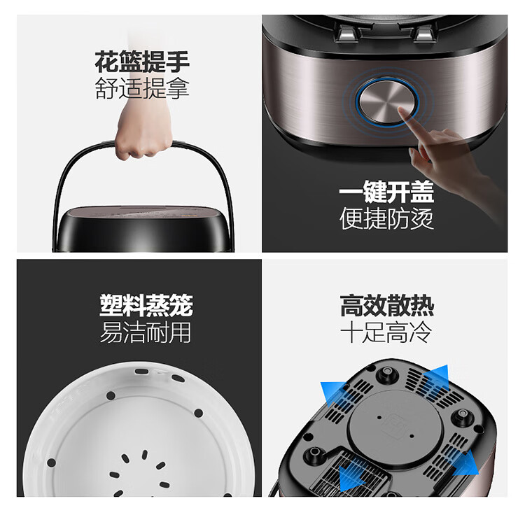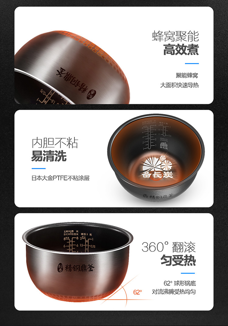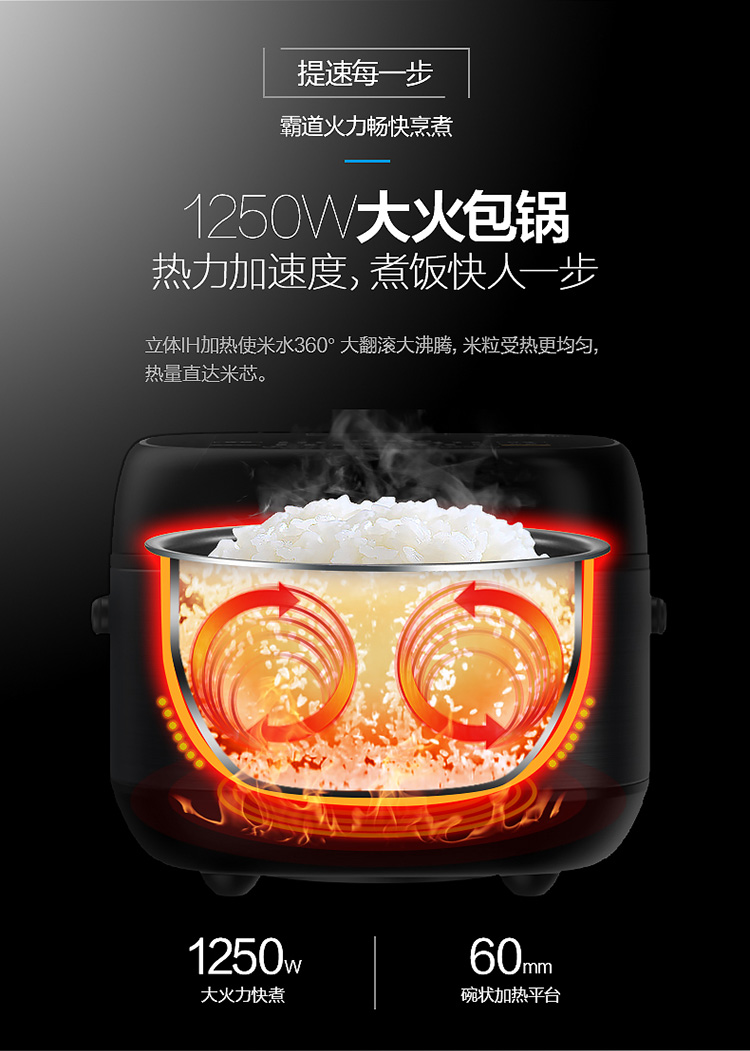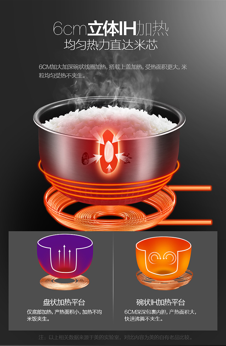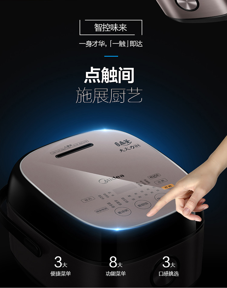 商品名称:美的电饭煲电饭锅5L大容量IH电磁加热智能24小时预约触摸操控一键香浓粥 【5L立体IH】恒匀火快煮