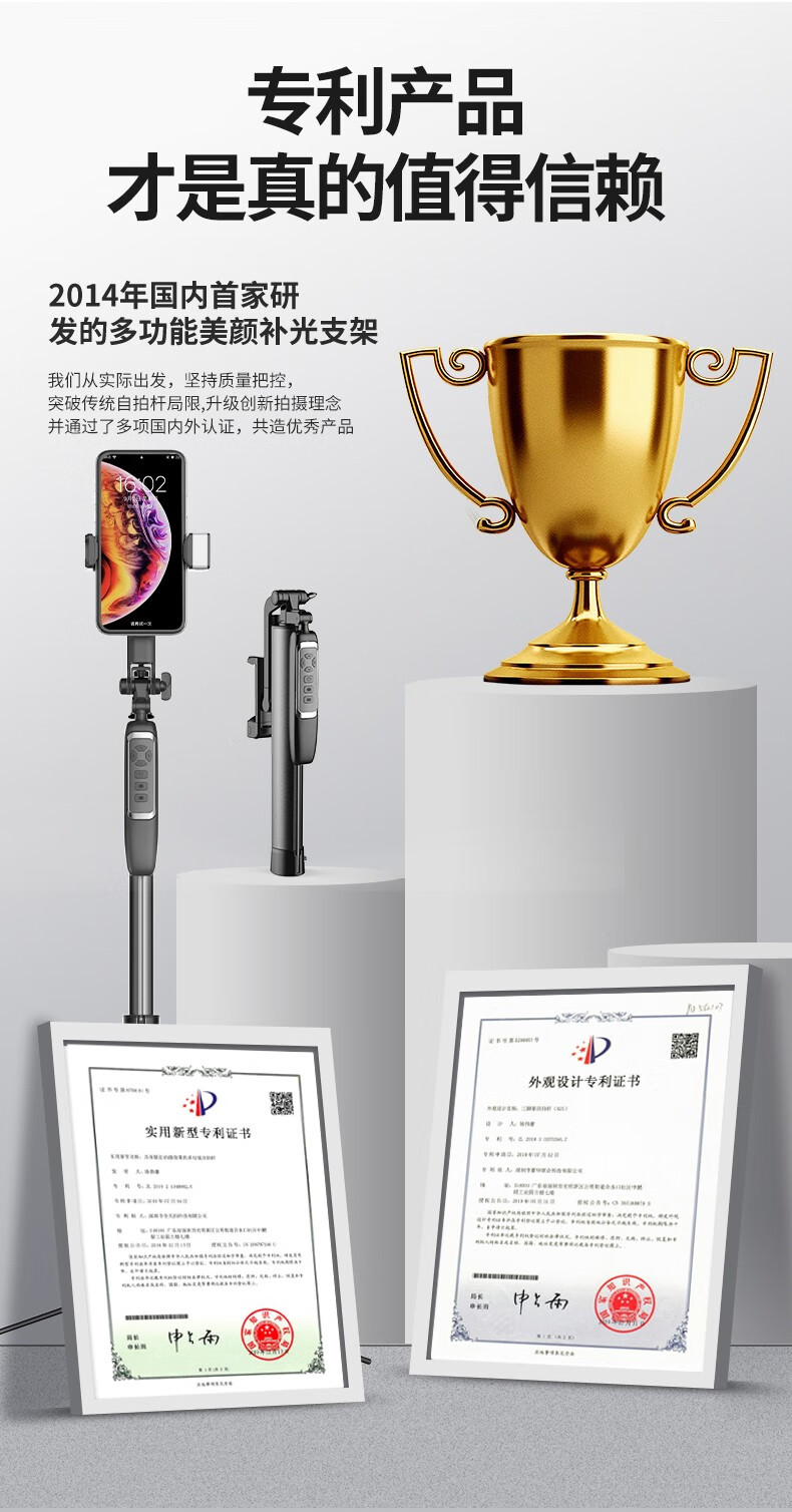 商品名称:2023新款防抖手机自拍杆直播三脚架多功能通用美颜蓝牙遥控抖音通用手持稳定器360旋