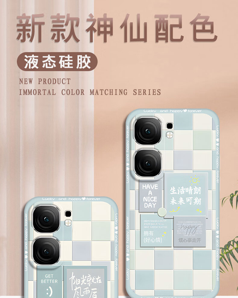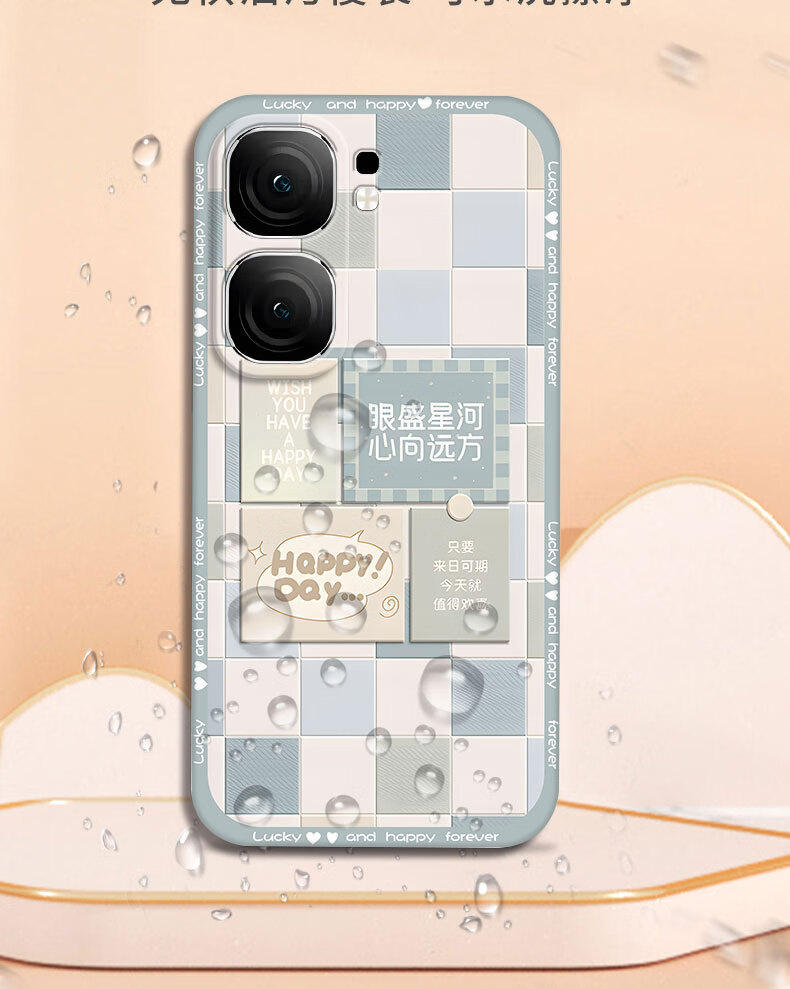 商品名称:雅千图 适用iQOONeo9手机壳新款高颜值格纹Neo9Pro硅胶全包防摔保护套网红小清新ins女款 古董白-生活晴朗液+膜 iQOONeo9