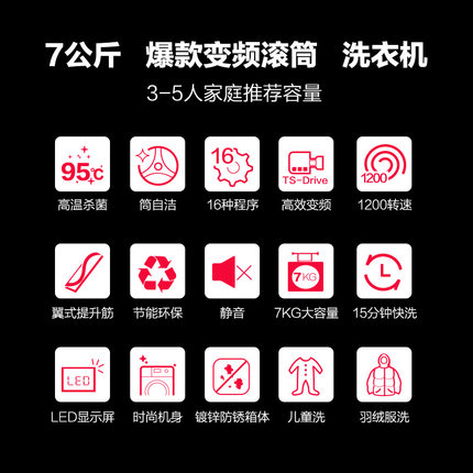 商品名称:Littleswan/小天鹅 TG70-VT1263ED 7kg/公斤变频滚筒全自动洗衣机