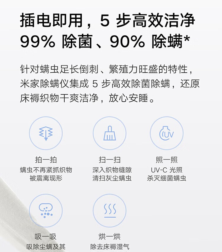 商品名称:米家 小米除螨仪手持床上UV紫外线杀菌除螨家用大吸力除螨虫仪真空小型除螨机 米家除螨仪