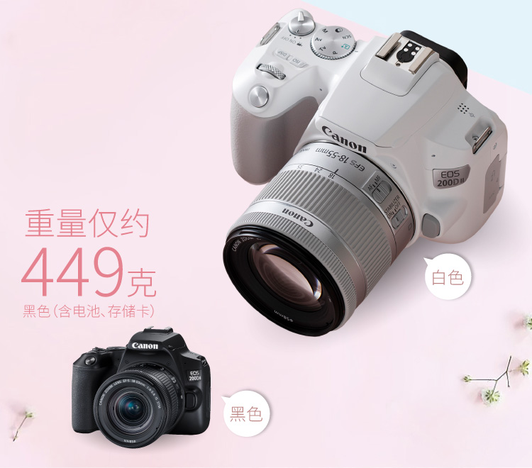 商品名称:佳能(Canon)EOS 200D II 200D2 迷你单反相机 数码相机(EF-S18-55mm f/4-5.6 IS STM)白色 Vlog相机视频
