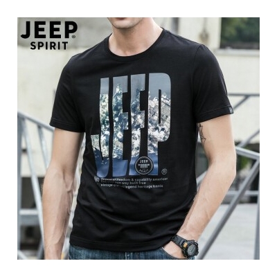 吉普(JEEP)运动男士短袖T恤男2020春夏新款休闲纯棉印花圆领宽松户外运动健身上衣t恤男打底衫
