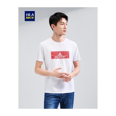 HLA海澜之家短袖T恤男2020夏季新品舒适运动印花圆领套头衫HNTBJ2Q149A