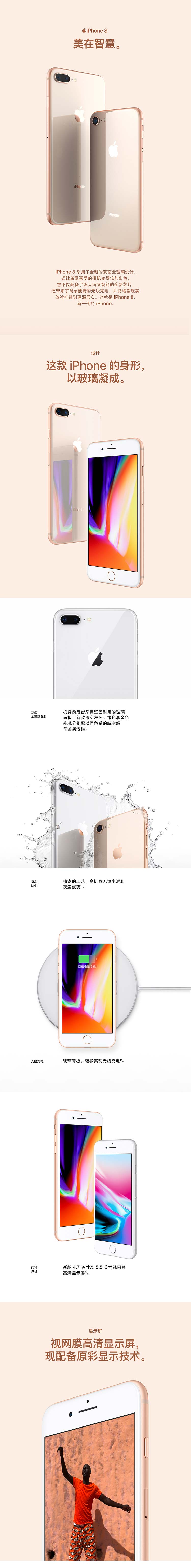 商品名称:Apple iPhone 8 (A1863) 256GB 金色 移动联通电信4G手机