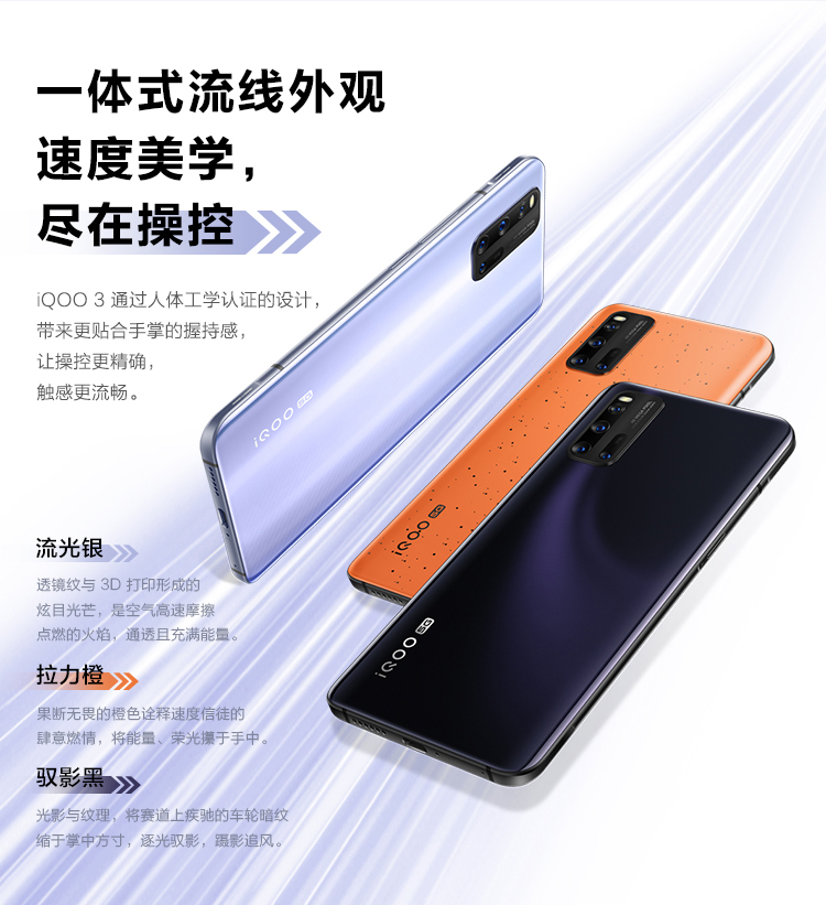 商品名称:iQOO 3 5G 12GB+128GB 驭影黑 高通骁龙865 55W超快闪充 专业电竞游戏体验手机 双模5G全网通手机