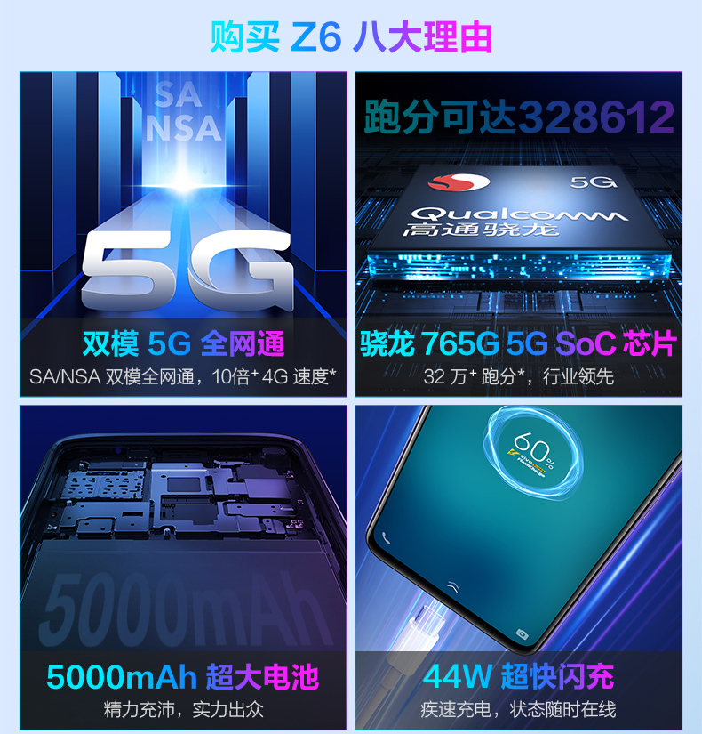 vivo Z6 5G骁龙765G处理器5000mAh大电池44W闪充游戏拍照旗舰正品5g手机
