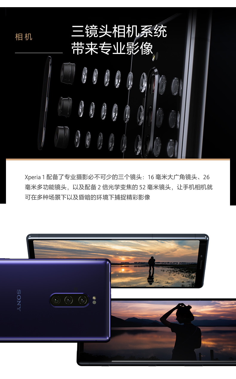 Sony/索尼旗舰手机 Xperia 1 OLED全面屏手机 4K视频 三摄拍照 游戏 双卡 正品