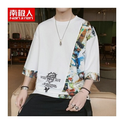 南极人短袖T恤男夏2020新款宽松五分中袖体恤印花上衣服半袖男装