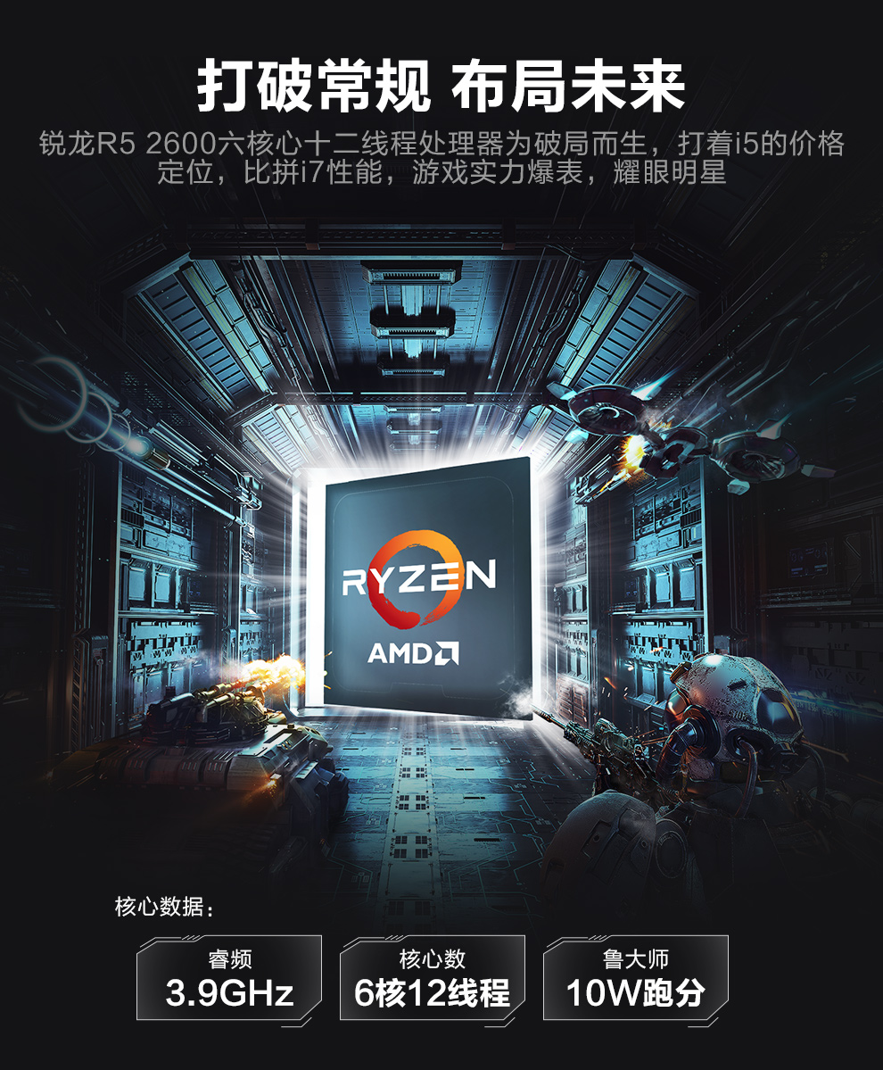 商品名称:攀升(IPASON)P87 锐龙R5 2600六核/RX580 8G/A320M/480G SSD/8G吃鸡游戏台式DIY组装电脑主机