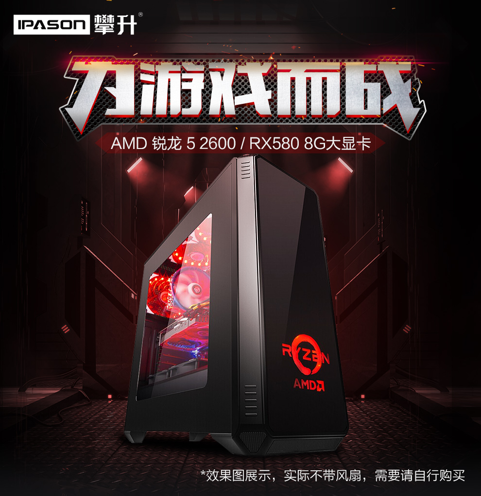 攀升(IPASON)P87 锐龙R5 2600六核/RX580 8G/A320M/480G SSD/8G吃鸡游戏台式DIY组装电脑主机