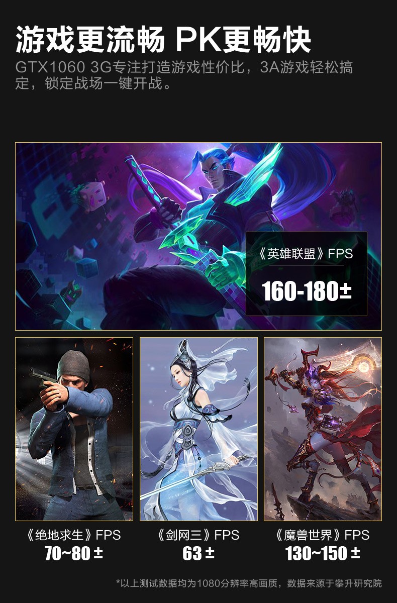 商品名称:攀升 i3 9100F四核/GTX1060 3G独显/8G内存吃鸡游戏台式电脑DIY组装机