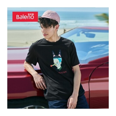 班尼路(Baleno)短袖男 2020夏季打底衫男短袖印花宽松半袖情侣t恤