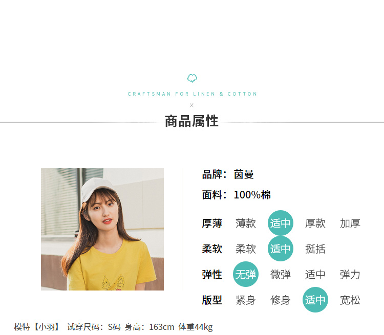 商品名称:茵曼2020夏装新款短袖T恤纯棉圆领可爱印花甜美减龄上衣女