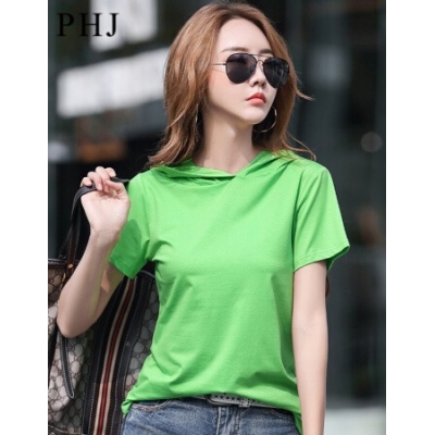 商品名称:PHJ 短袖t恤女连帽2020春夏装韩版修身百搭大码上衣服半袖洋气体恤潮