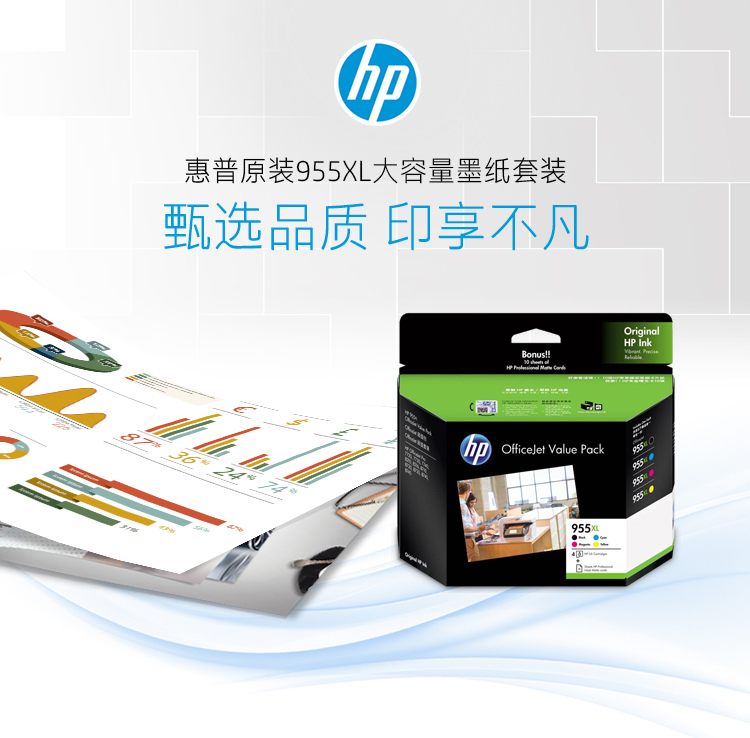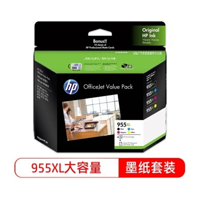 商品名称:惠普 HP 2PD46A 原装955XL 大容量墨纸套装(适用8210 8710 8720 7720 7740)含10张无光泽卡片纸