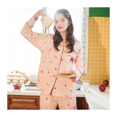商品名称:芬腾 睡衣女纯棉春秋季新品休闲印花长袖翻领开衫草莓全棉家居服套装女