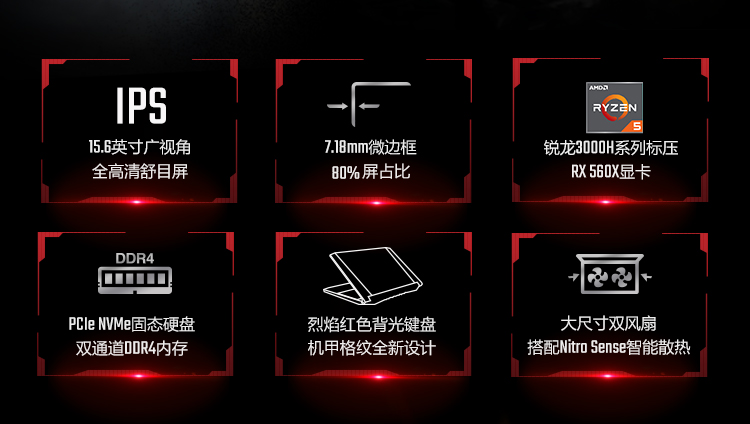 宏碁暗影骑士4 15.6英寸窄边框游戏本笔记本( 8G 512GPCIe RX560X 4G独显 IPS)