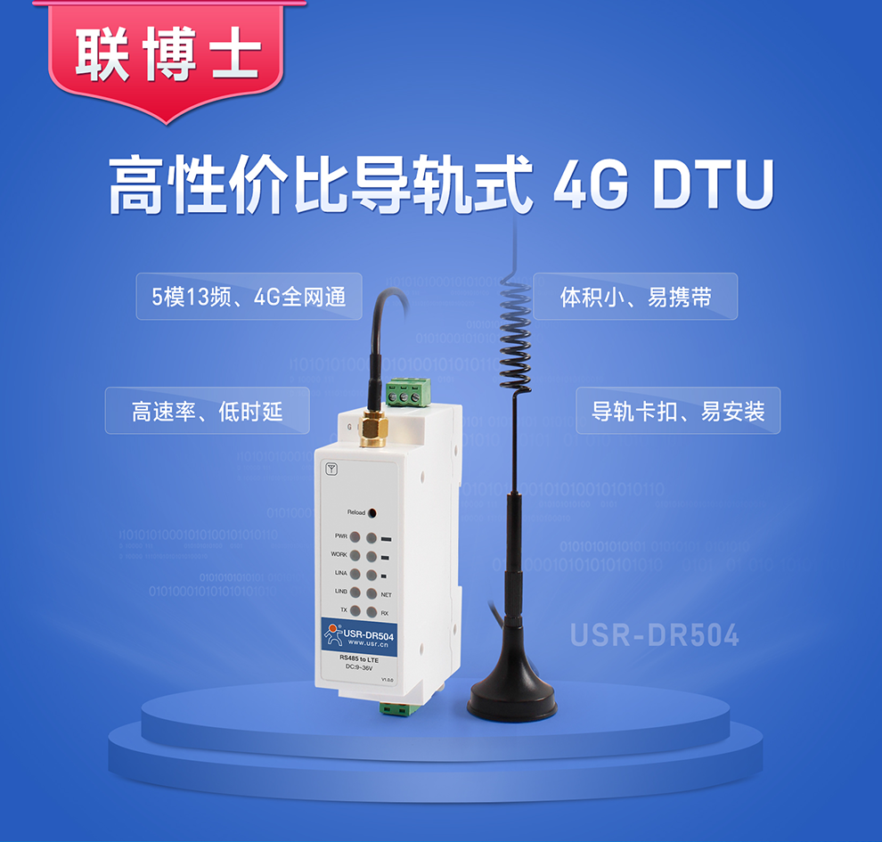 工业级导轨式4g dtu无线数据传输设备全网通有人物联网USR-DR504联博士系列 裸机+天线