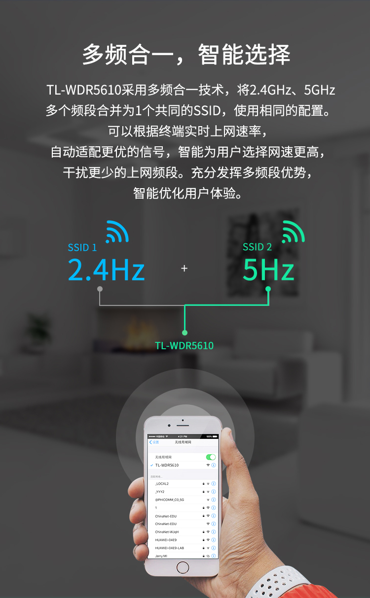 商品名称:TP-LINK TL-WDR5610宝蓝 1200M 5G双频智能无线路由器 四天线智能wifi 稳定穿墙高速家用