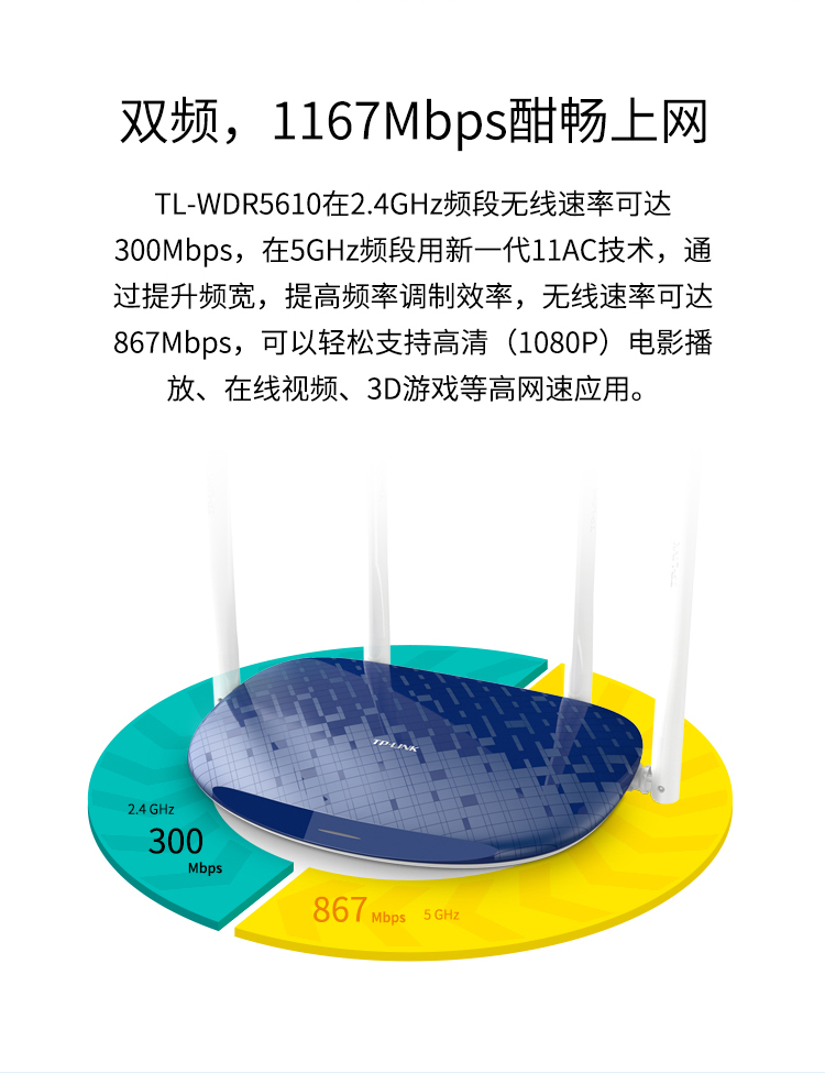 TP-LINK TL-WDR5610宝蓝 1200M 5G双频智能无线路由器 四天线智能wifi 稳定穿墙高速家用