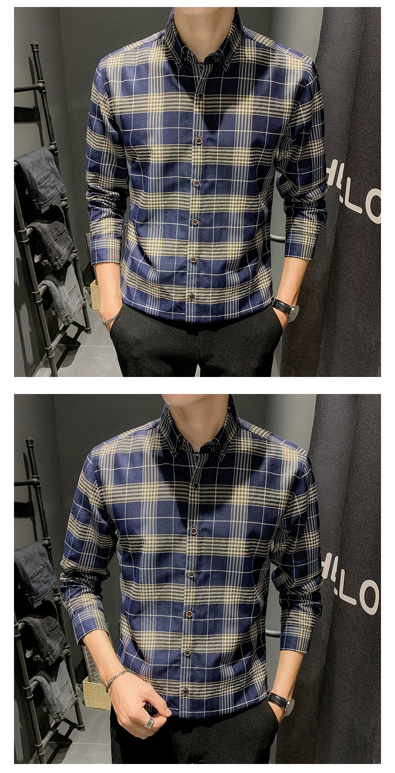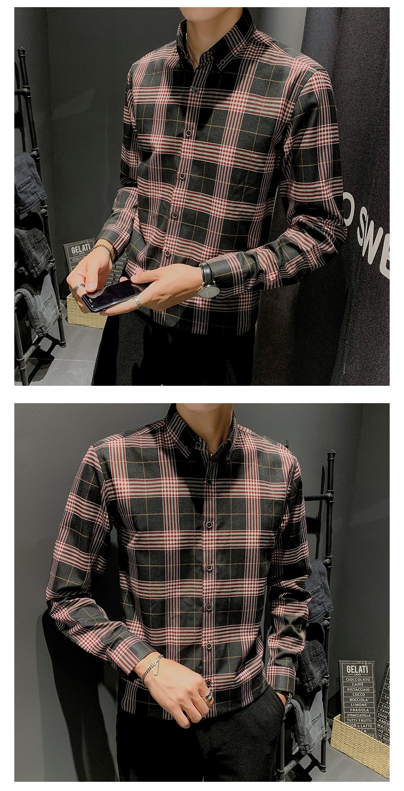 花花公子(PLAYBOY)2020新款格子衬衫男长袖韩版潮流修身衬衣男士春装上衣潮