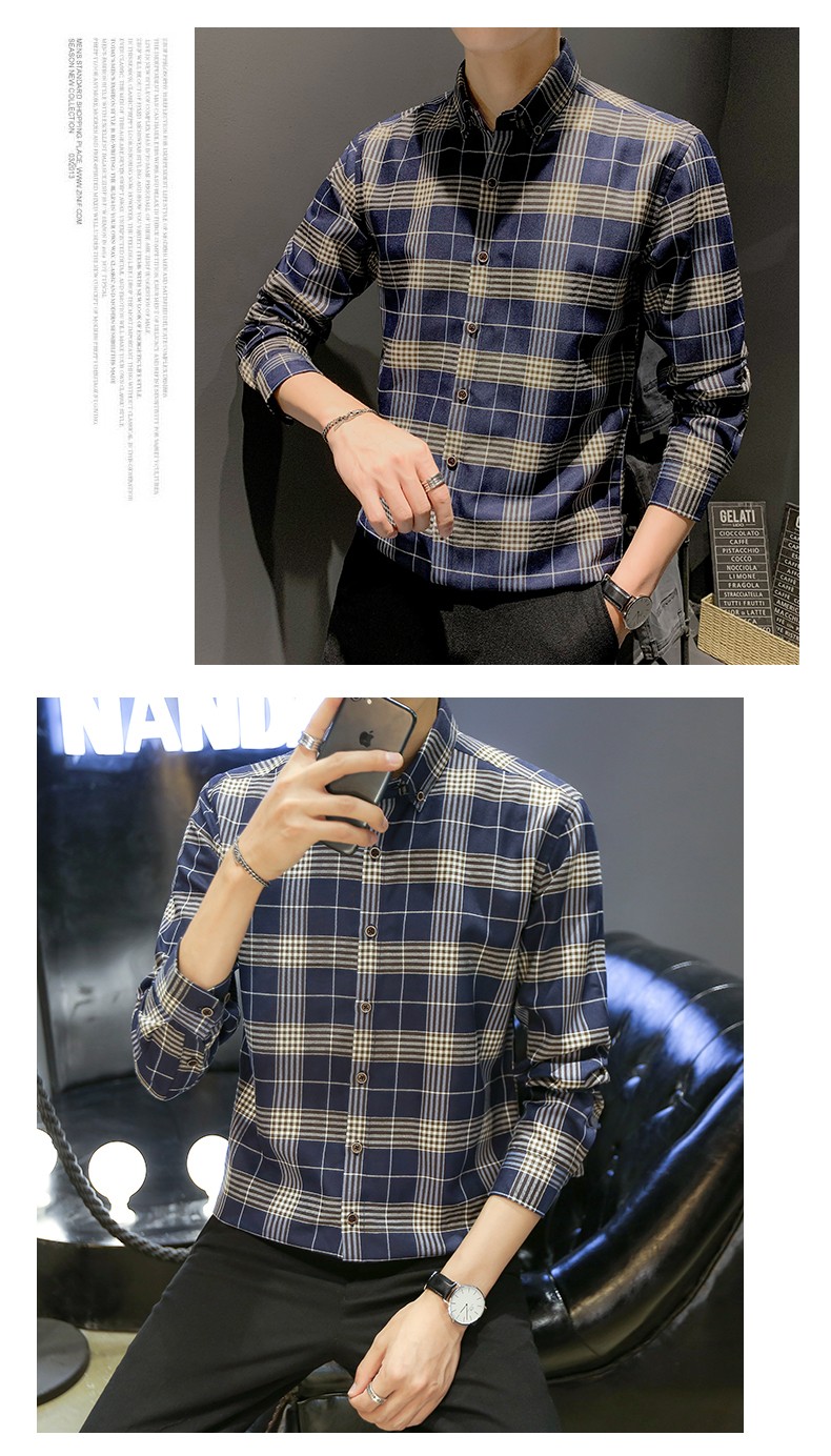 商品名称:花花公子(PLAYBOY)2020新款格子衬衫男长袖韩版潮流修身衬衣男士春装上衣潮