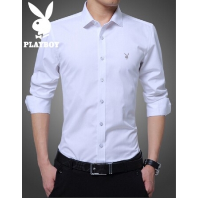 花花公子衬衫男修身长袖商务正装衬衣舒适透气韩版潮流男士白上衣大码打底衫