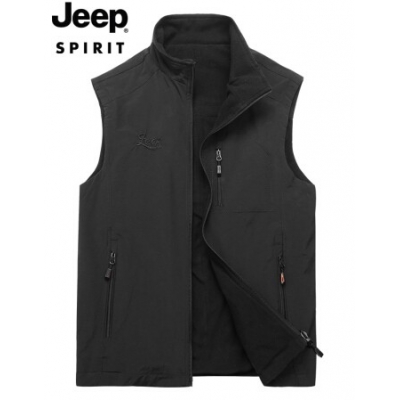 吉普JEEP马甲男2020新品春秋季男士马夹外套户外登山钓鱼摄影休闲双面穿抓绒坎肩背心