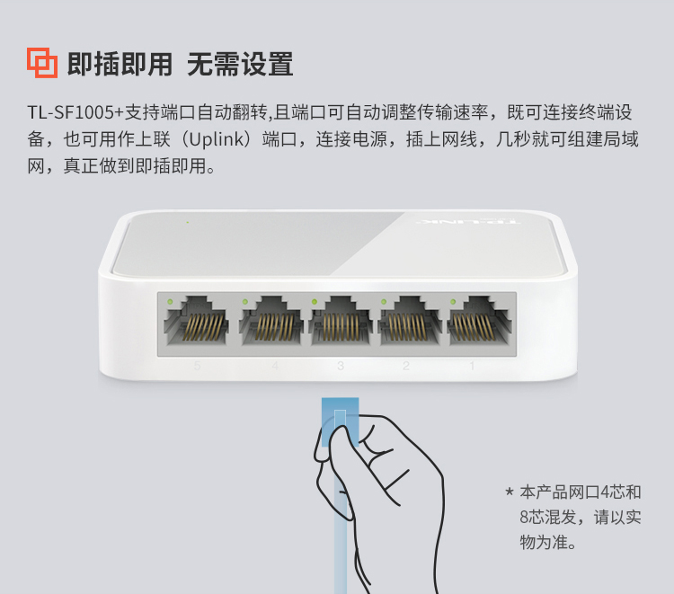 商品名称:TP-LINK 5口百兆交换机 4口监控网络网线分线器 家用宿舍分流器 TL-SF1005+
