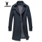 花花公子风衣男中长款2020春秋季男装韩版修身大衣商务休闲外套男