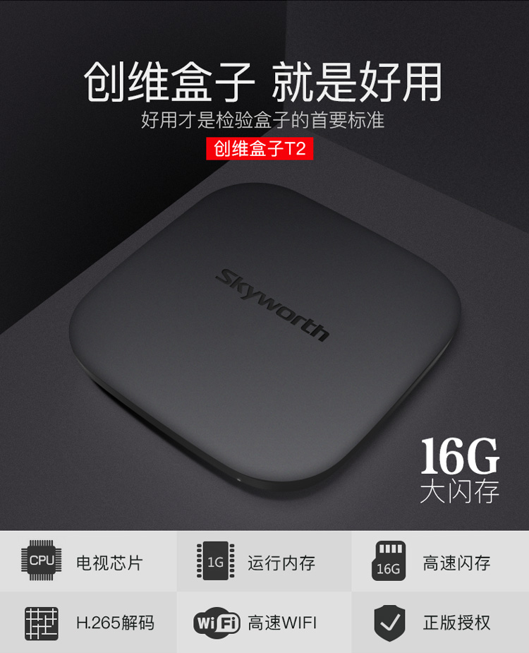 创维盒子T2 电视机顶盒 智能网络盒子4核16G闪存 高清电视无线wifi