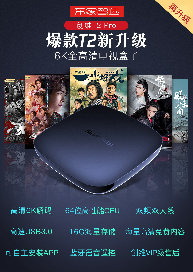 商品名称:创维盒子T2Pro语音版 电视网络机顶盒 6K高清盒子智能语音16G大存储双频wifi