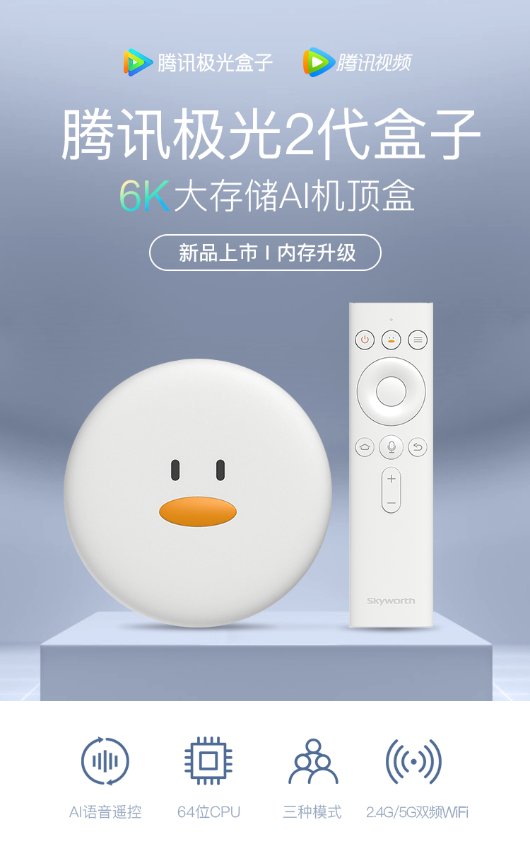 腾讯(Tencent)极光2代盒子 电视网络机顶盒 6K高清智能语音遥控 双频wifi 2+8G大存储 蓝牙4.2