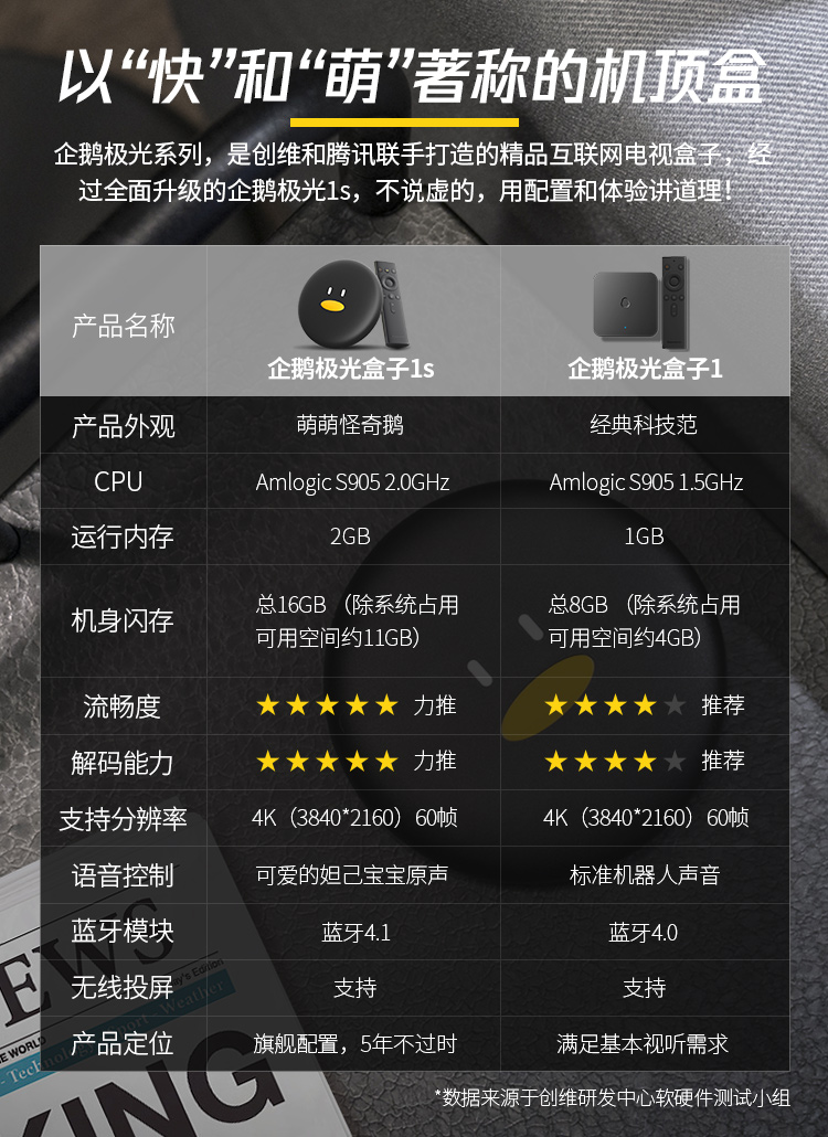 商品名称:腾讯企鹅极光盒子1s双频版 网络电视机顶盒 4K高清HDR智能语音 2+16G大存储 2.4G/5G双频wifi