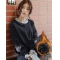 PHJ 加绒加厚卫衣女2020秋冬新款条纹拼接喇叭袖假两件宽松女士上衣