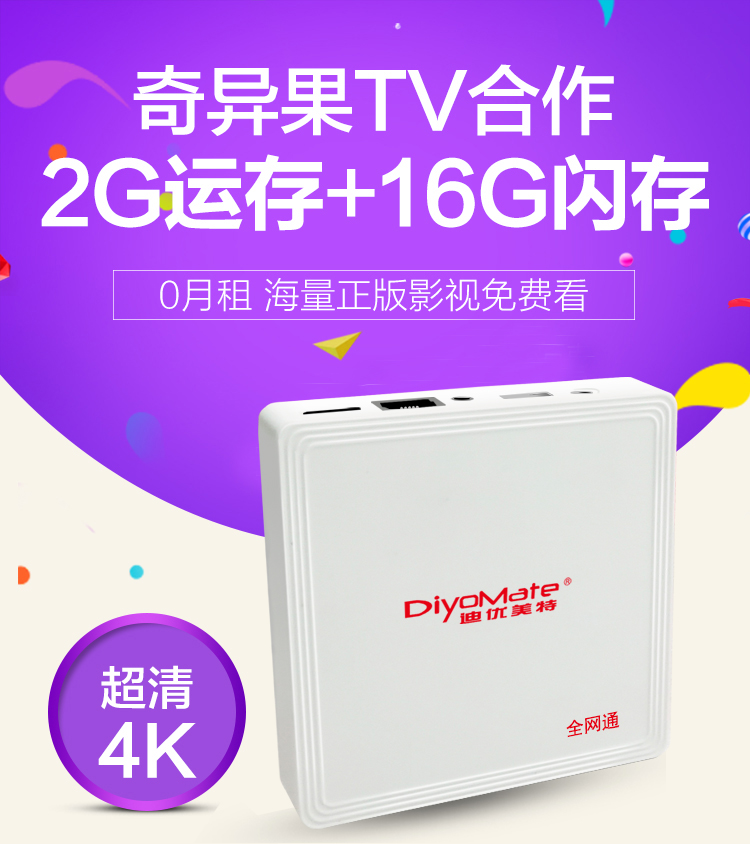 商品名称:迪优美特(Diyomate)X800网络机顶盒 4K电视盒子 2+16G 无线wifi高清播放器