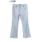 茵曼夏装弹性棉牛仔分割毛边显瘦七分喇叭裤女牛仔裤【1872333403】 水蓝色