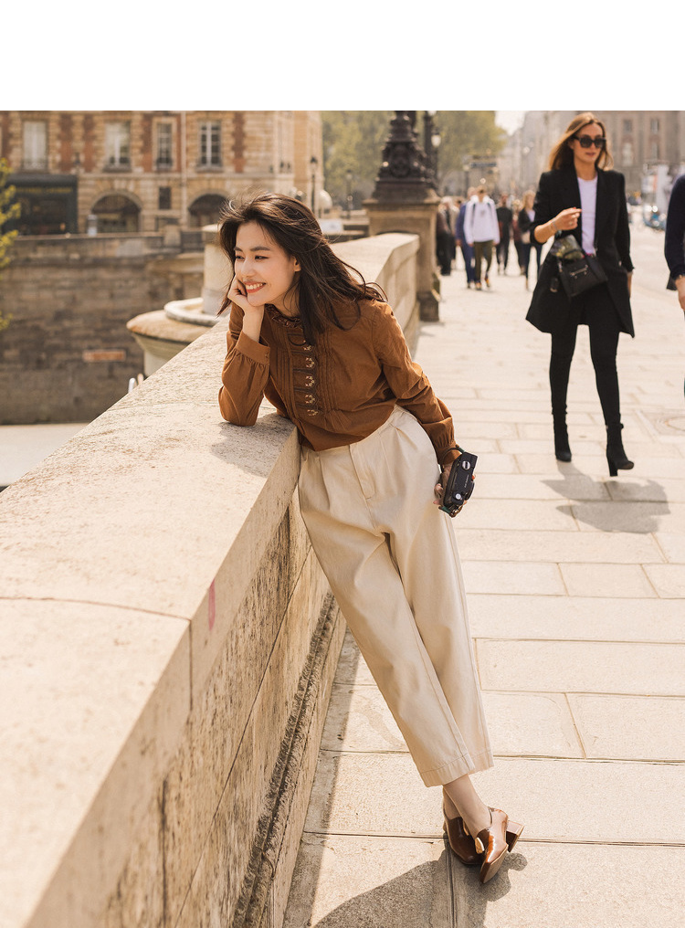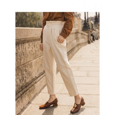 商品名称:茵曼秋装新款全棉休闲文艺高腰百搭哈伦小脚米白色牛仔裤女【1893161276】 米白色