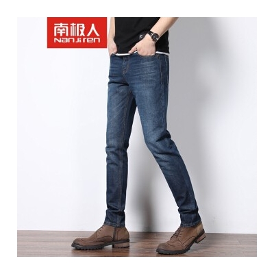 南极人牛仔裤男简约男士中腰棉质百搭休闲牛仔裤长裤 853蓝黑
