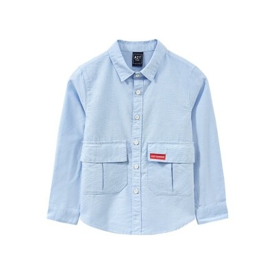 以纯线上品牌A21童装 男童衬衫长袖秋季新款儿童纯棉翻领时尚韩版衬衫R493310002 粉蓝