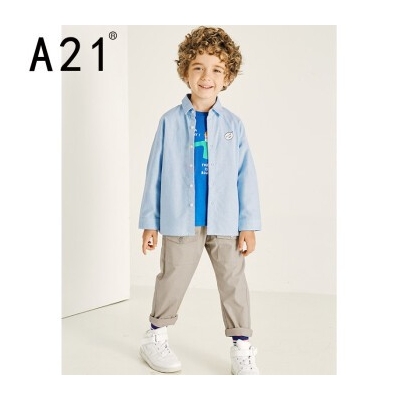 A21 以纯线上品牌童装2020春款男童衬衣纯棉透气儿童衬衫 粉蓝