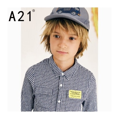 A21 以纯线上品牌男童衬衫长袖秋装新款童装儿童衬衣格子上衣 宝蓝