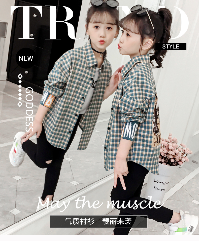 商品名称:迪士尼女童春装2020小女孩长袖大童儿童春秋季新款洋气格子衬衣衬衫外套同款 绿色