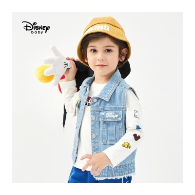 商品名称:迪士尼童装儿童休闲背心上衣男童春装新款洋气梭织时尚牛仔马甲 浅牛仔蓝