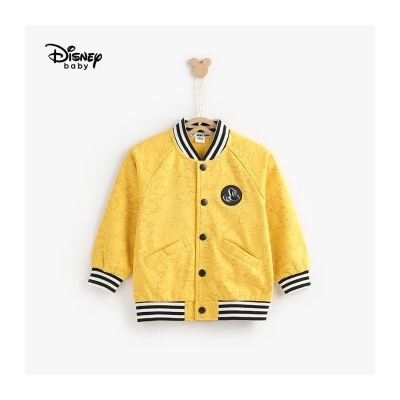 商品名称:迪士尼童装2020春季新款儿童开衫上衣宝宝男童时尚棒球外套帅气 亮黄线条暗纹米奇