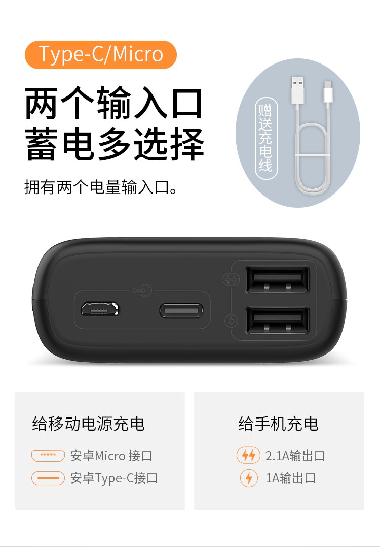 商品名称:罗马仕Ares10充电宝10000毫安移动电源超薄小巧迷你双USB输出智能数显苹果安卓Type-C 黑色