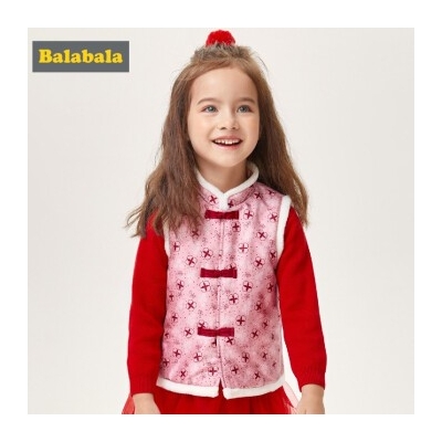商品名称:巴拉巴拉balabala 儿童女童中国风夹棉马甲春装2020新款宝宝背心坎肩男 红白色调