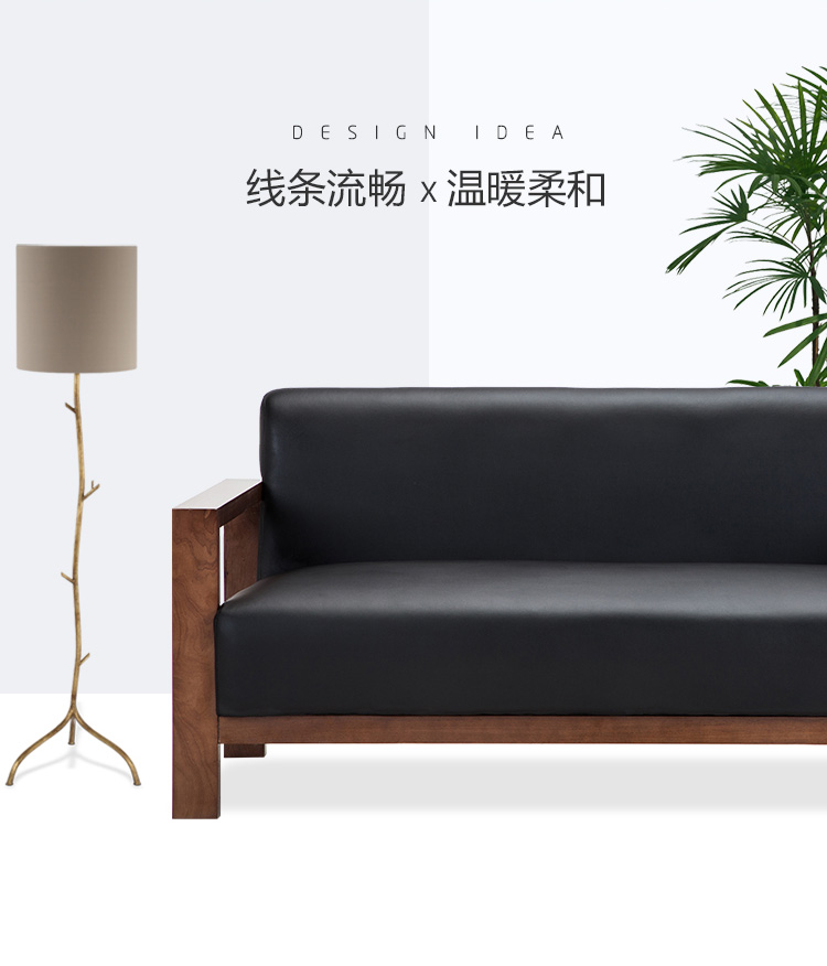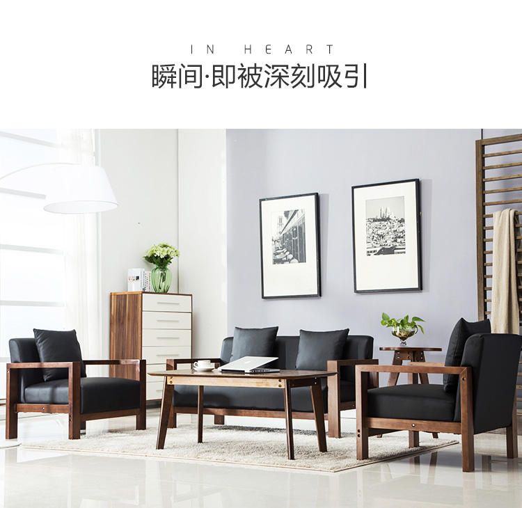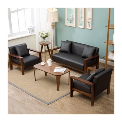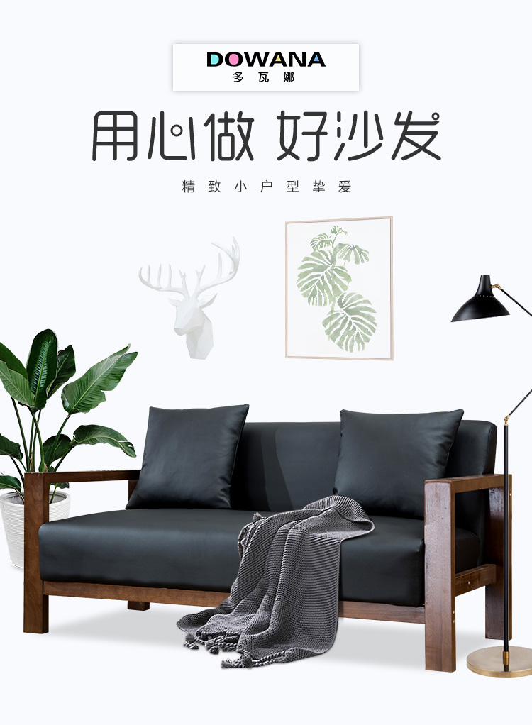 商品名称:多瓦娜(DOWANA)沙发 现代小户型实木皮沙发 简约新中式办公沙发DWN-S002-2黑色 双人位