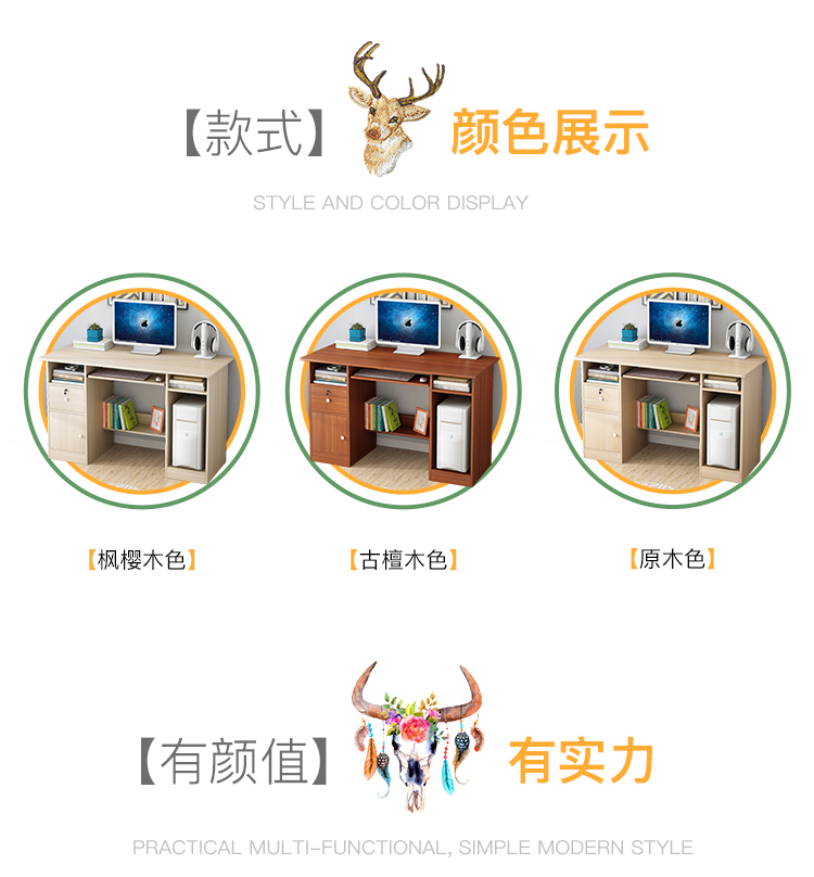 蔓斯菲尔(MSFE)电脑桌台式书桌书柜组合办公桌子写字台学习桌 原木色